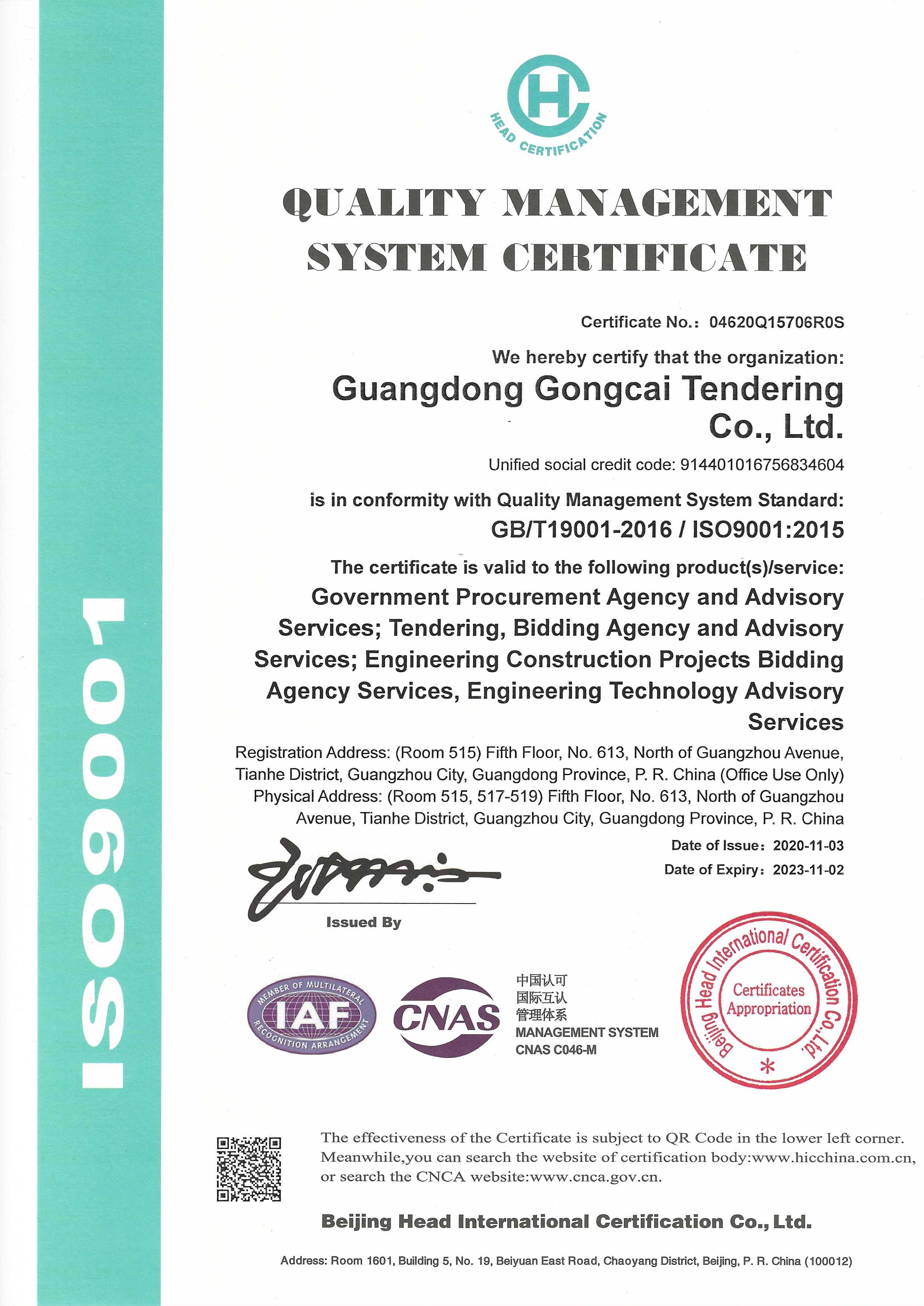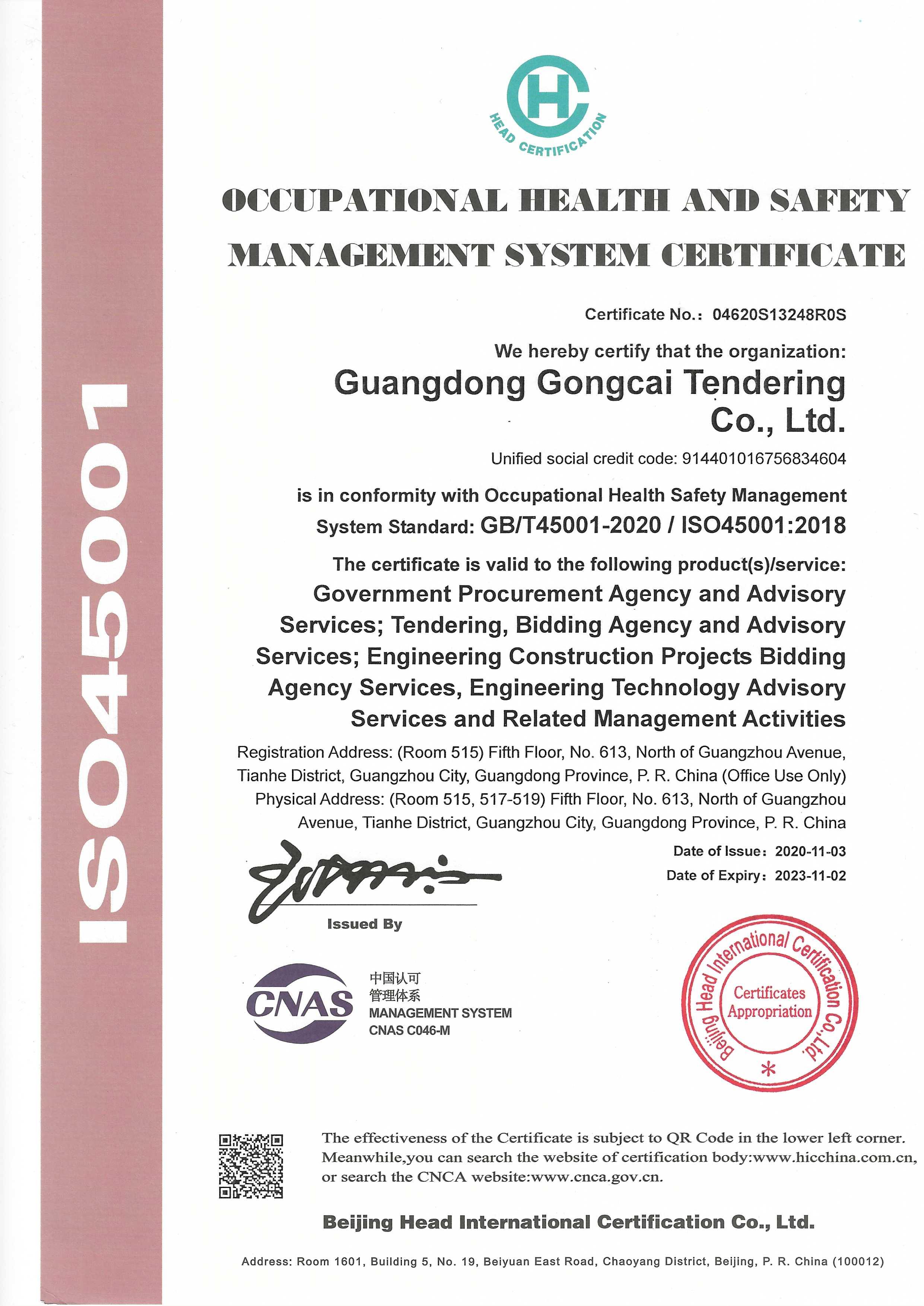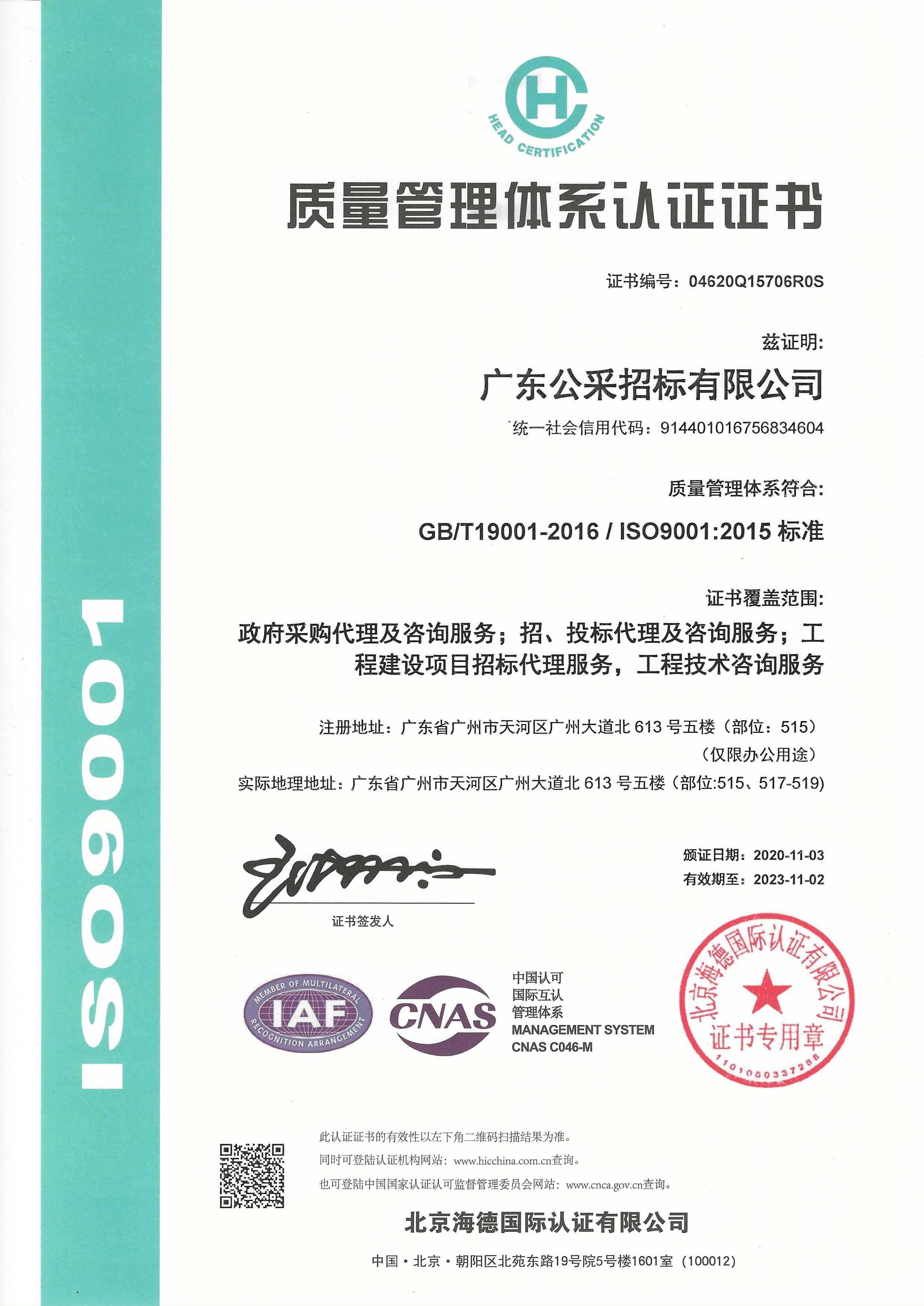 廣東公采招標有限公司通過ISO及OHSAS系列國際認證