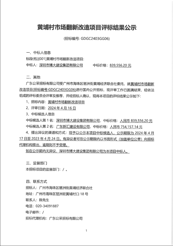 黃埔村市場翻新改造項目評標(biāo)結(jié)果公示
