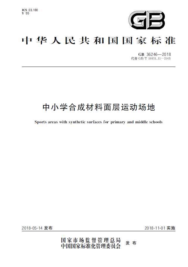 2018年5月7日,《中小學(xué)合成材料面層運(yùn)動(dòng)場(chǎng)地》GB 36246-2018 國(guó)標(biāo)委員會(huì)擬定發(fā)布。